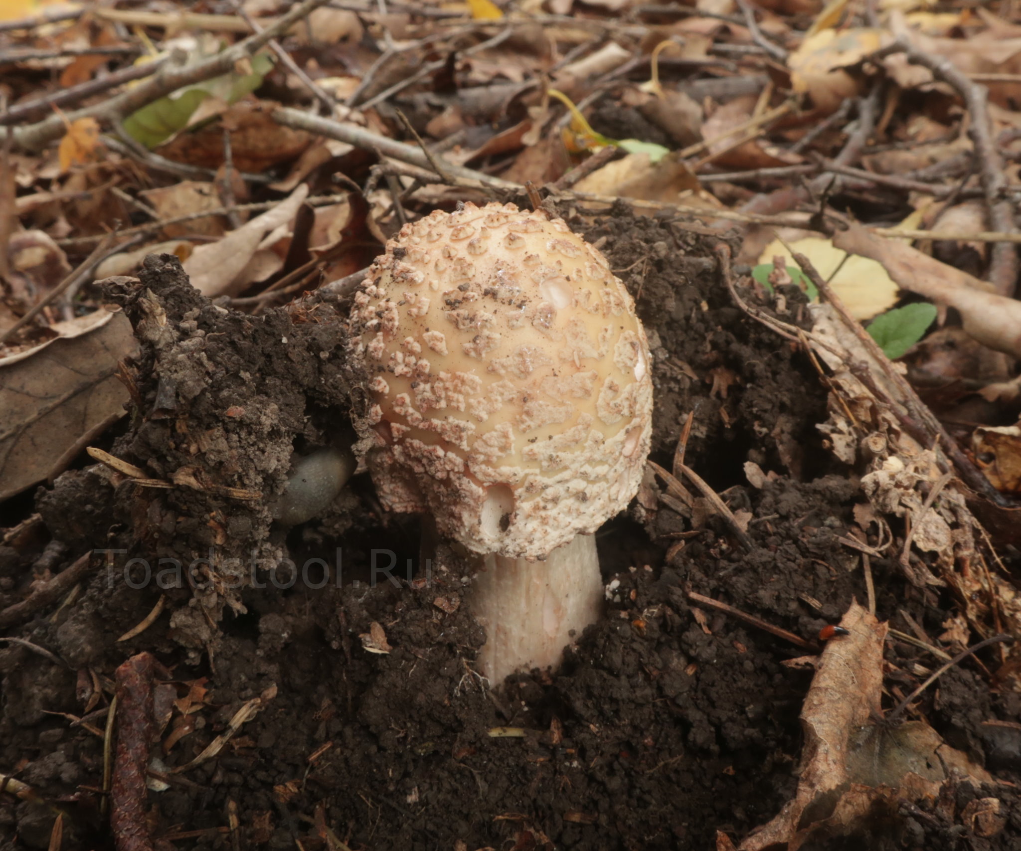 Серо-розовый мухомор не всегда ярок, но всегда узнаваем: розоватый оттенок шляпки, крупные клочья покрывала и большое свисающее кольцо - глядя на эти признаки, не обязательно даже ножку резать.