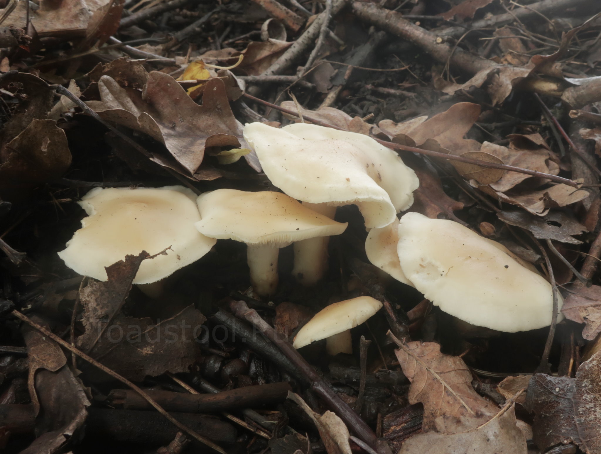 Рядом с желтыми "майками" оформился и кустик белесых представителей. Судя по геометрии, грибницу они представляли одну и ту же. Следовательно, окраска шляпки майского гриба - лишь мимолетный каприз природы.