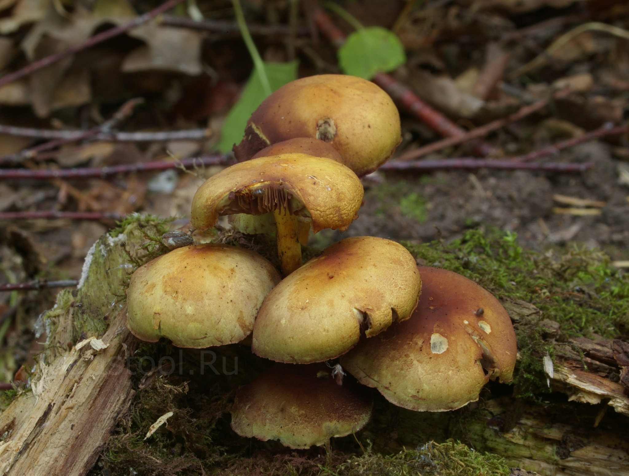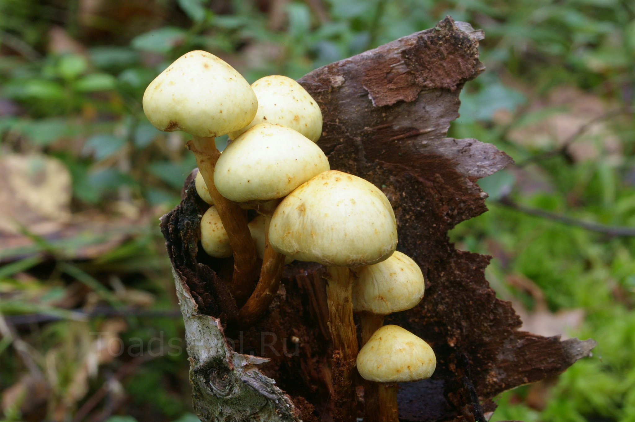 В таком состоянии серно-желтый опенок можно даже перепутать с какой-нибудь полноценной чешуйчаткой из группы ольховых. Чтобы удостовериться наверное, надо смотреть пластинки - они-то уж не подводят, сохраняя оригинальную ядовито-зеленоватую расцветку.