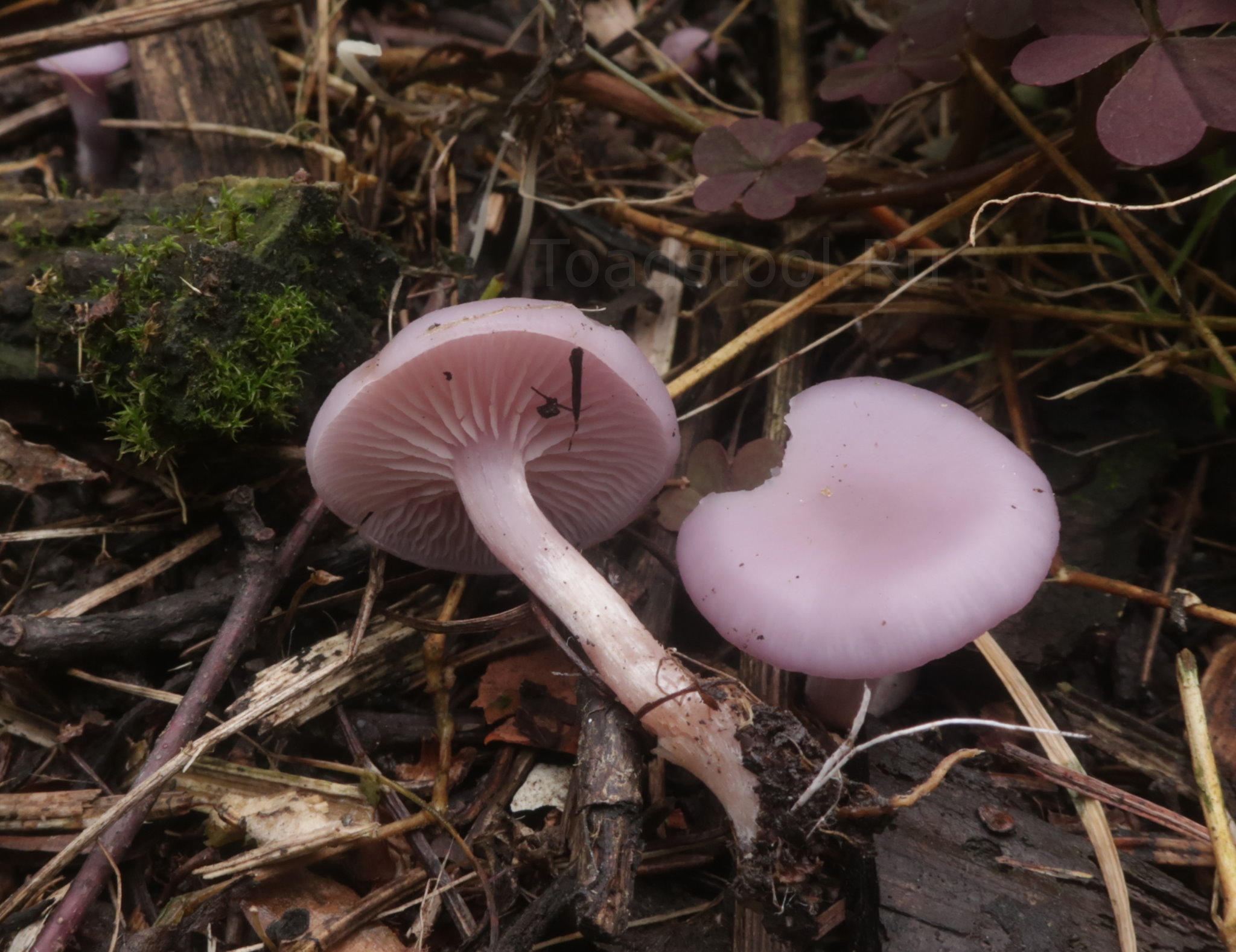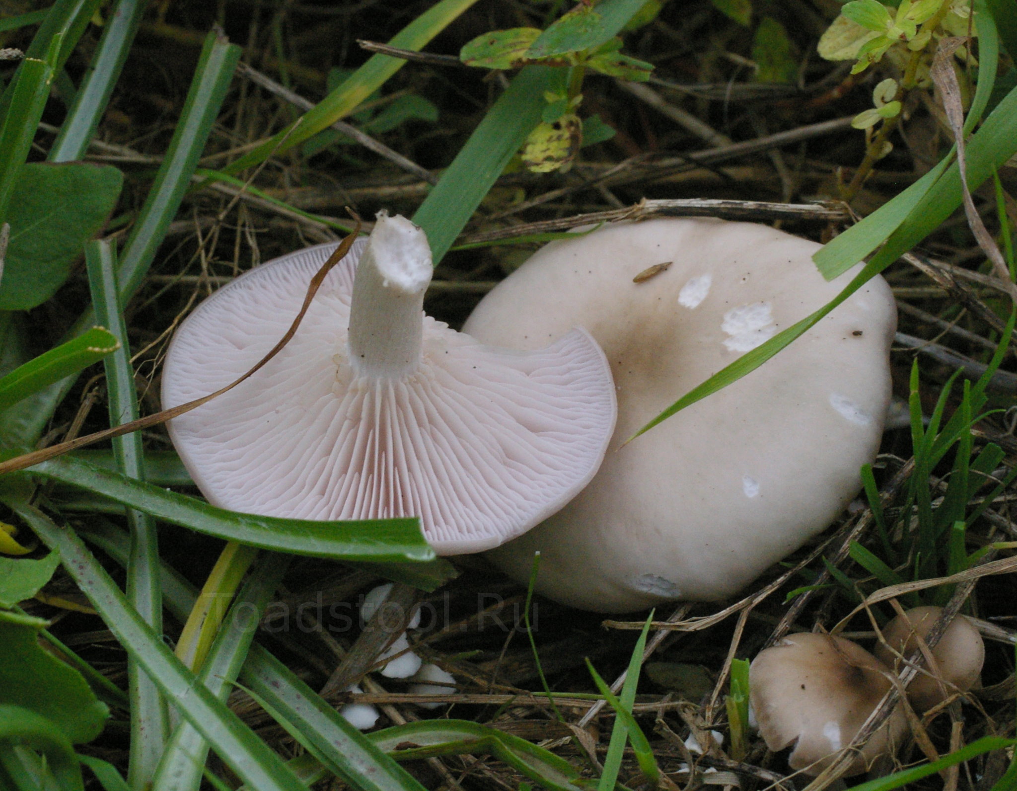 Экземпляры, не хлебнувшие воды. Здесь кажется, что отличия от Lepista nuda сошли на нет. Если бы не окружающая толпа более характерных грибов - распознать сорную рядовку не было бы никакой возможности.