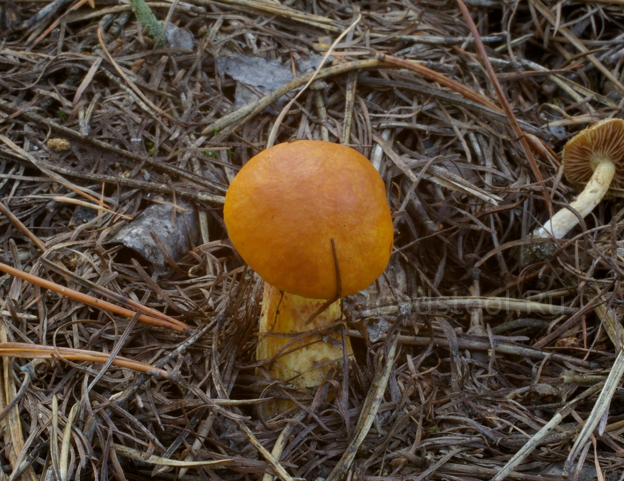 В настоящем лиственничном лесу (точнее, в сосново-лиственничных посадках под Воскресенском, на месте фосфатных разработок) Suillus grevillei выглядит действительно лиственничным. Увы, вызывающая окраска не дает этому замечательному грибу ни единого шанса против зондер-команд заготовителей, прочесывающих ровные ряды лиственничных посадок сомкнутой цепью.
