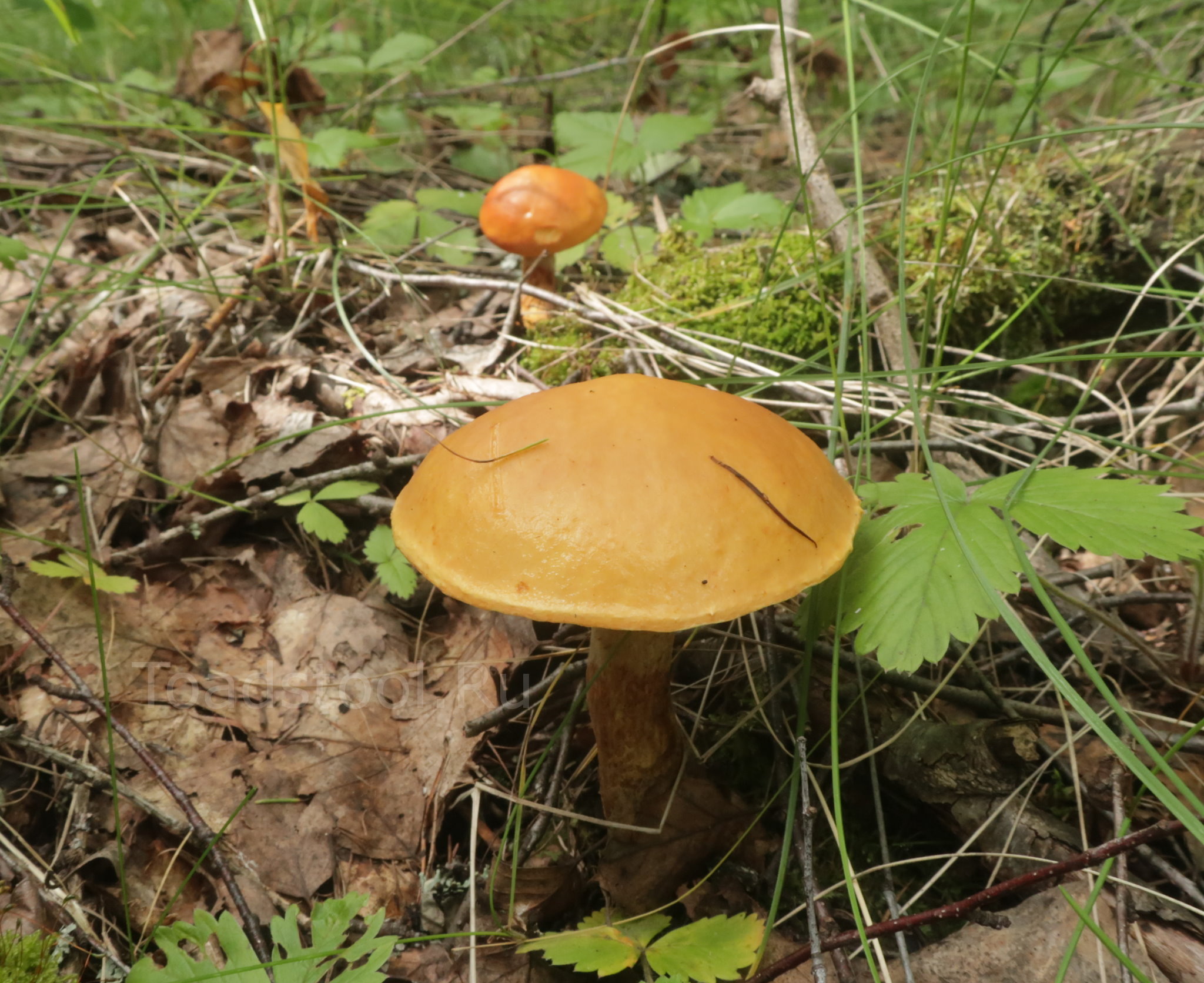 Первый раз мне это не удалось. Удача ускользнула, снимки получились безобразными. Но местечко запомнилось, и ровно через два года, ровно на том же месте, нашелся почти такой же гриб. Пусть и не столь молодой и красивый, пусть и не столь яркий. Но всё-таки — он, масленок лиственничный, бог его знает что делающий в чахлых еловых посадках, на колоссальном расстоянии от ближайшей лиственницы.