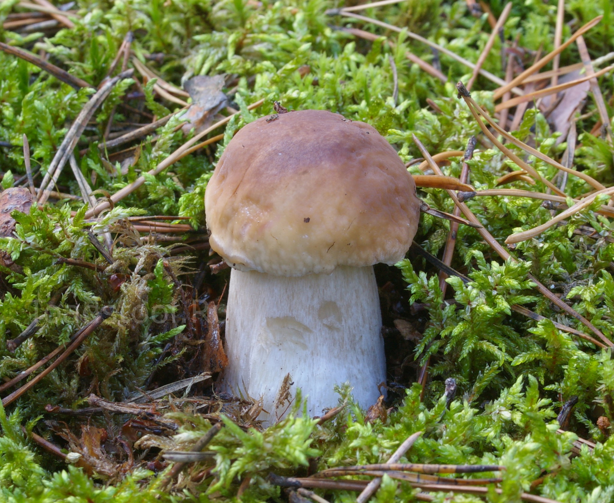 "Во мху я!" Белый гриб, выросший во мху, не так могуч, как его березовый сородич, однако по части эстетики может опередить всех своих конкурентов. Но вот еловый он или сосновый (в смысле, есть же в природе и настоящий белый, образующий микоризу с сосной, а не только боровик-пинофиллус) - науке неведомо.
