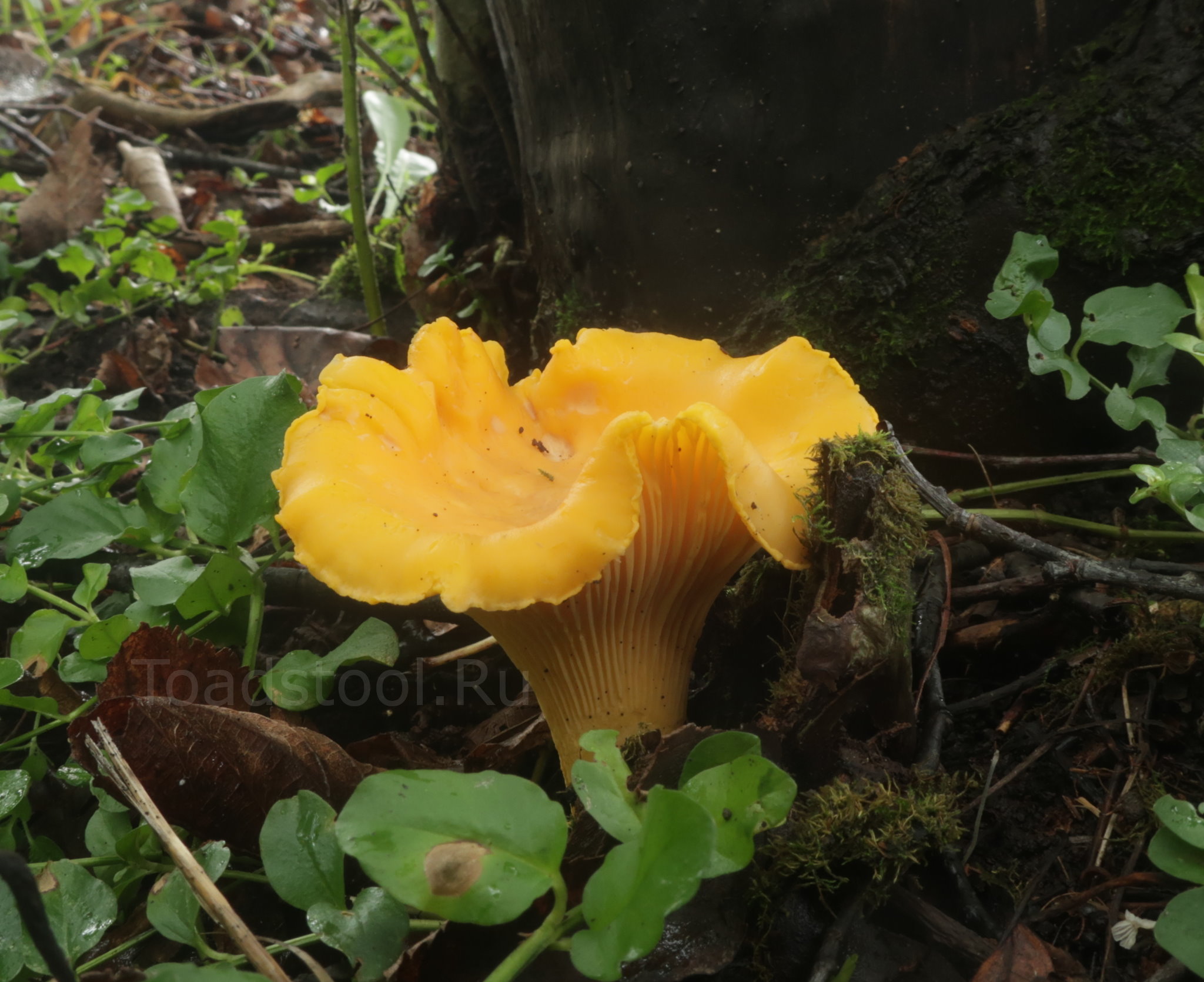 Не так часто гриб бывает доподлинно похож на букет цветов. Надо полагать, эта лисичка поглотила целую группу своих собратьев, вырастив на одной ноге сразу несколько шляпок. Видно, не только ежовики так умеют.