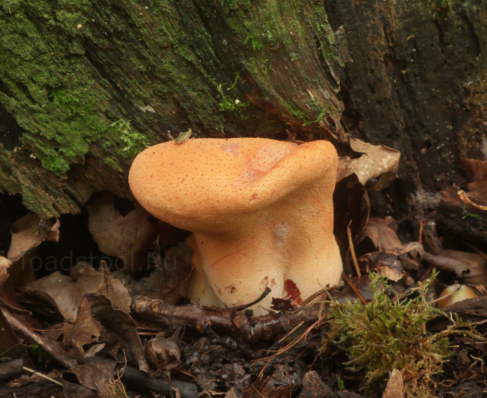 Гименофор: Желтый или бежевый, с мелкими короткими обособленными трубочками; при прикосновении резко краснеет.