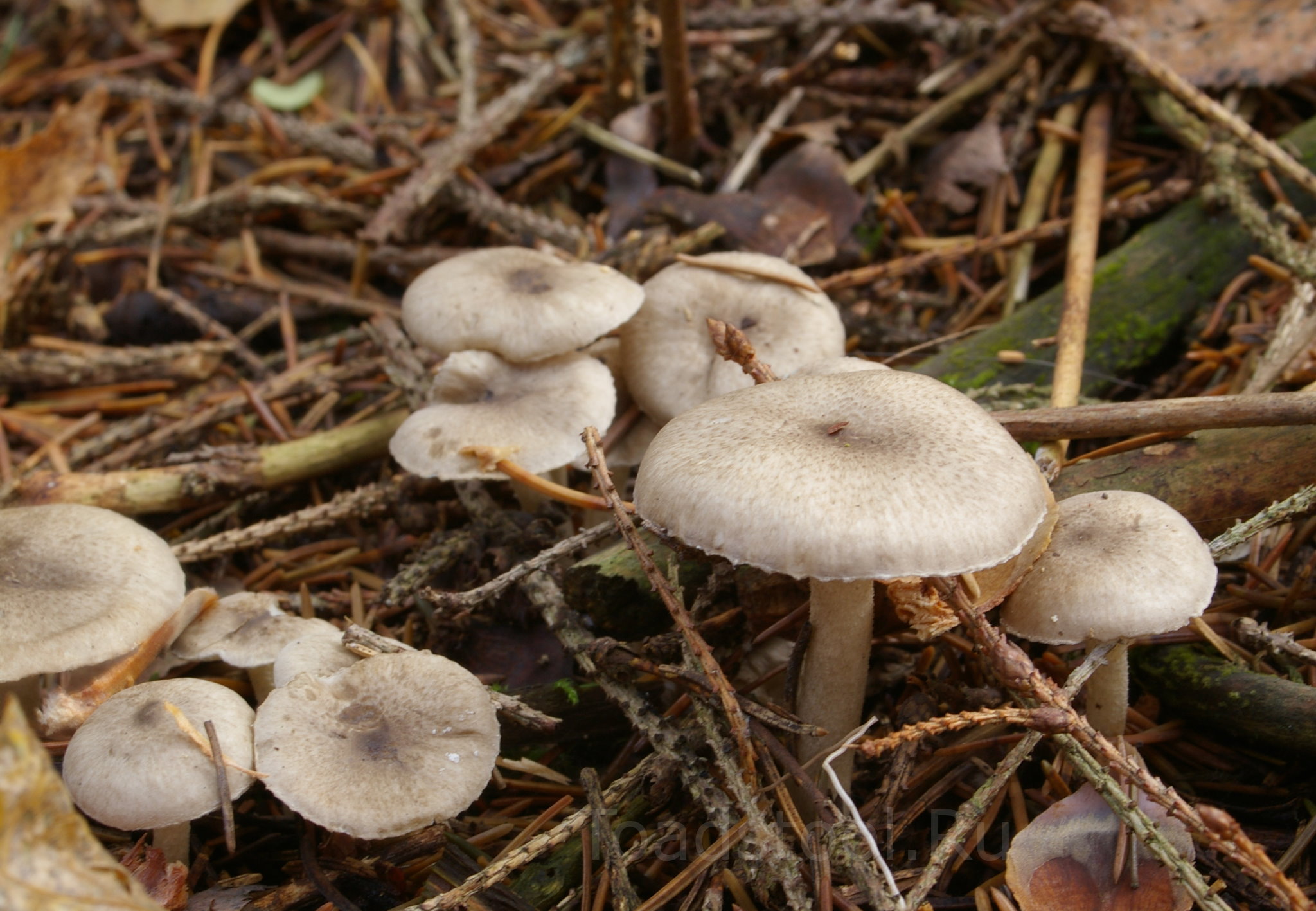 "И так до самой опушки". Не очень понятно, в самом ли деле Hygrophorus pustulatus является микоризообразователем, или просто трудится над переработкой еловой подстилки. Потому что растет как коллибия какая-то. Хотя серьезные источники указывают, что все гигрофоры - грибы микоризные, и вряд ли пятнистый будет тут исключением.