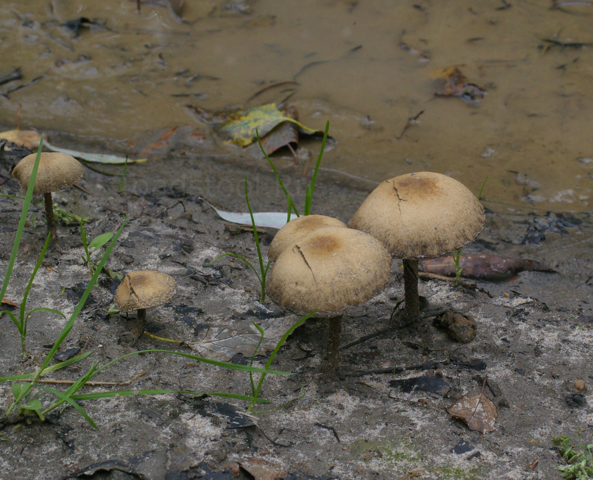 Ножка: Весьма изменчивой длины (в среднем 4-8 см, но возможны отклонения в обе стороны), при условии доброго субстрата достаточно мощная для своего размера (0,5-1 см в толщину), цилиндрическая, полая, покрытая волокнистыми остатками покрывала. Окраска верхней части грязно-беловатая, в нижней темнее вплоть до охристо-бурой.