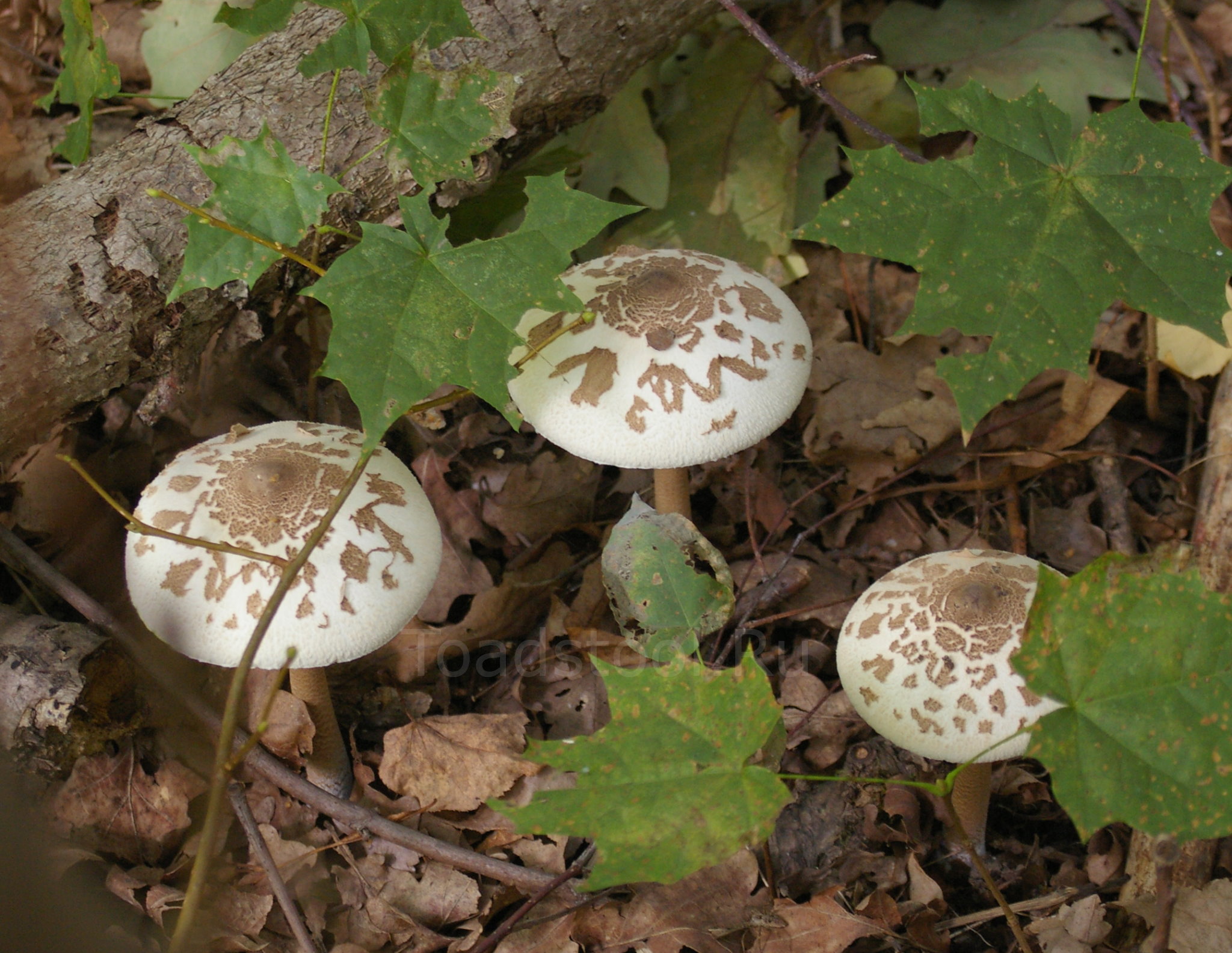 Замечания автора: Многие годы находил у нас в старых лиственничных посадках, за высохшим ручьем, среди винтажных коряг, в зарослях осоки, некрупные — для макролепиот — пестрые с виду зонтики. Вот, думал, как оно бывает! На Оке, где пески и скудность, зонтики эти как барные табуретки, а тут, на черноземе — просто лепиоты-переростки. Щедра сюрпризами природа! И окрашены все как интересно, не сказать чтоб случайность — нашлепка маленькая на голове, будто кипа. Такое впечатление, вслух посмеивался я, будто это не пестрый зонтик, а какой-то другой вид!