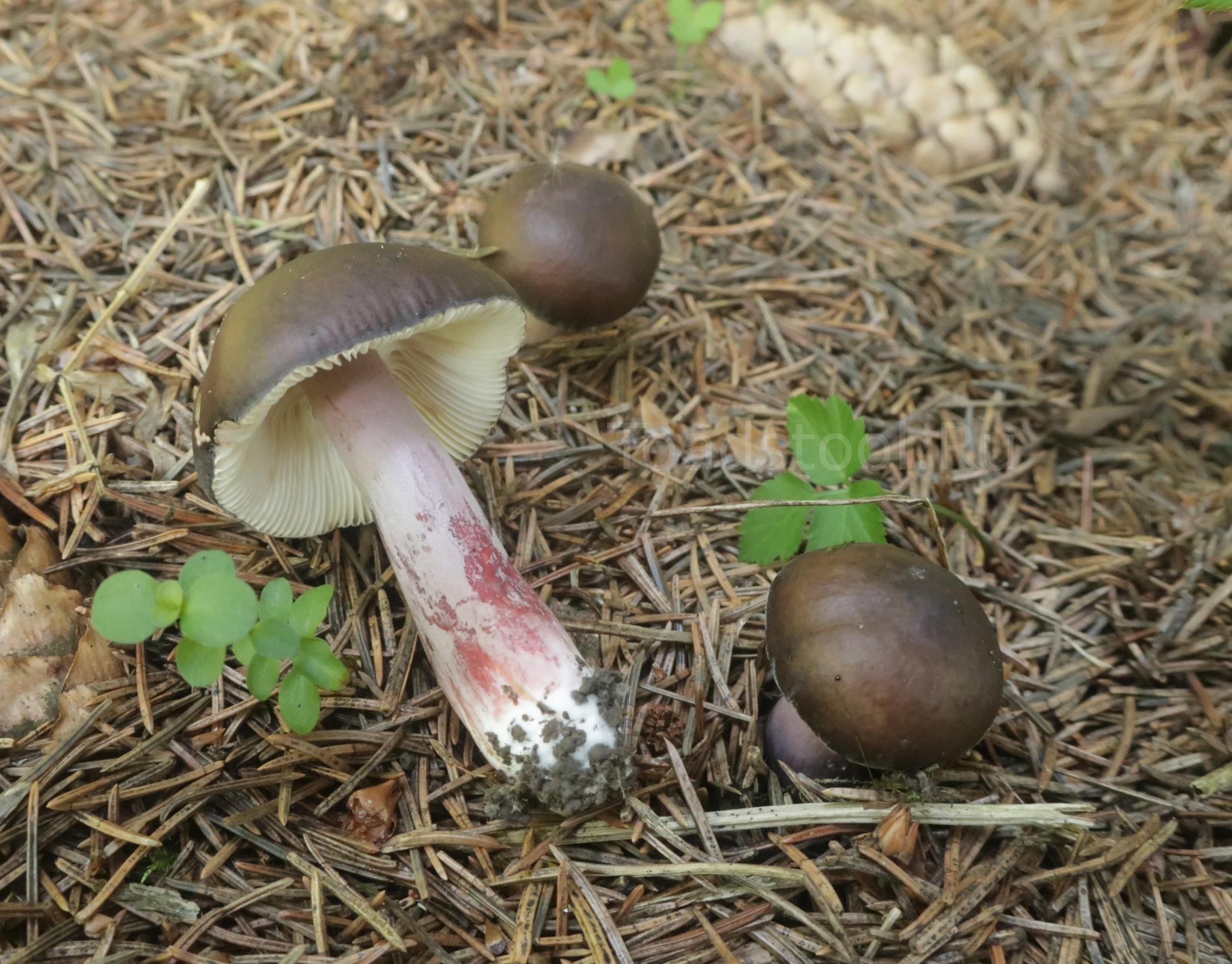 Ножка: 3-8 см в высоту, 0,5 — 1,5 см в толщину, цилиндрическая, ровная или слегка расширяющаяся в нижней части. Окраска — винно-красная или фиолетовая, в верхней части светлее; по фактуре — рыхловатая, особенно с возрастом.