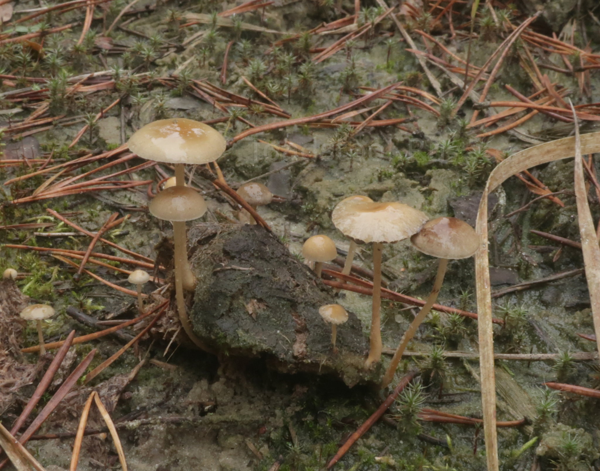 Шляпка: В молодости почти шаровидная, затем аккуратная полусферическая, почти никогда не раскрывающаяся, без бугорка в центре. Диаметр 1-3 см, поверхность гладкая, во влажную погоду — клейкая. Цвет светло-желтый, глинистый. Мякоть тонкая, желтоватая.