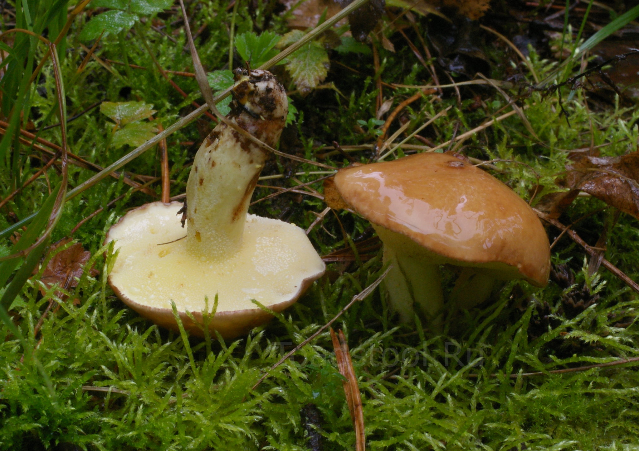 Гименофор: Трубочки мелкопористые, приросшие короткие, желтоватые, с возрастом приобретают зеленоватый оттенок; у молодых экземпляров из трубочек выделяются мелкие капли белого млечного сока, которые затем темнеют. Частное покрывало отсутствует.