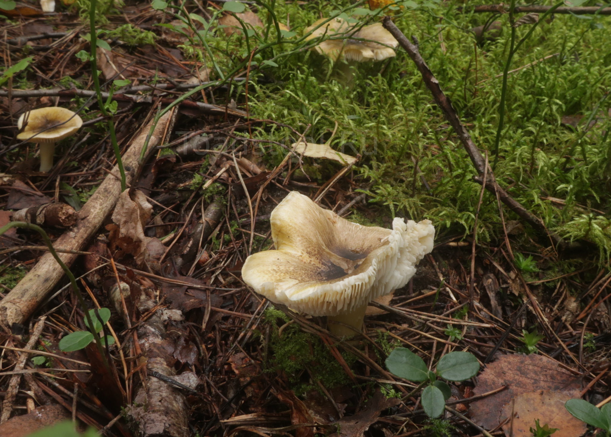 Однако в процессе подготовки этого материала в бочку уверенности добавилась и ложечка сомнения. Биотоп-то не совпадает! Какие известковые, какие плодородные? Ёлки-сосны, аппетитный мох; на этой почве написано русским языком: «кислая я». Но, с другой стороны, чисто аналитически все остальные признаки сходятся, вариантов нет…